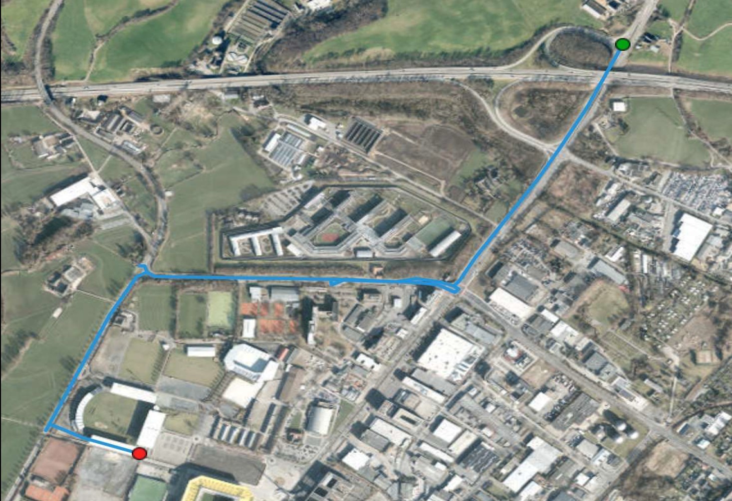 Die Zufahrt zur Nordeinfahrt des Parkhauses erfolgt über die Albert-Servais-Allee vom 2. Kreisverkehr aus