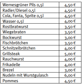 ermäßigt: (Ausweis/Nachweispflicht) Schüler bis 18, Auszubildende; Studenten bis 27 Jahre, Schwerbehinderte ab 50%; Bundessozialdienst, FSJ