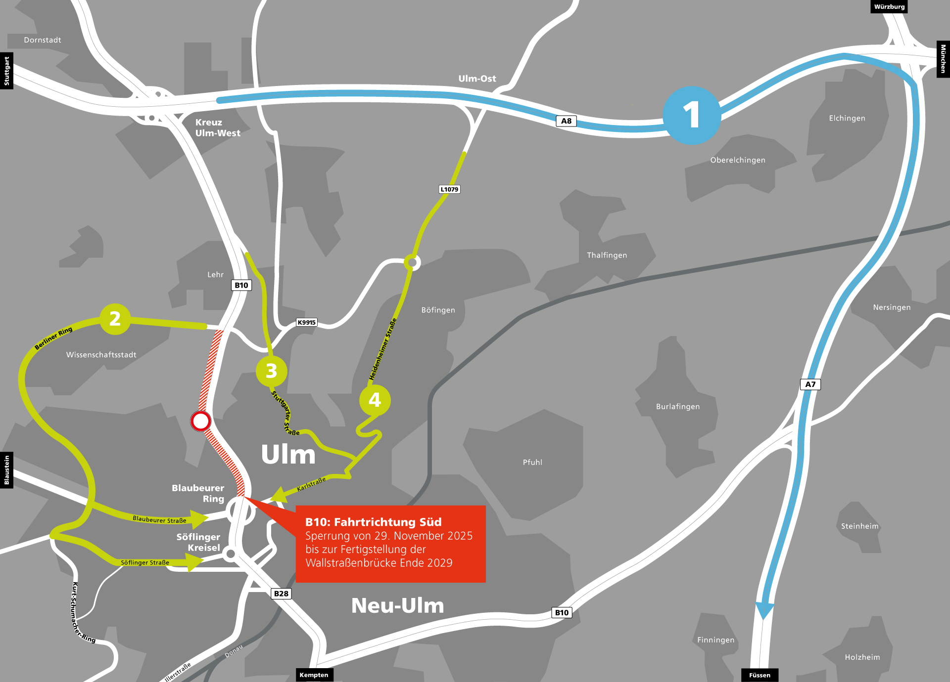 Achtung: B10 Sperrung der Fahrtrichtung von Norden nach Süden