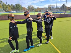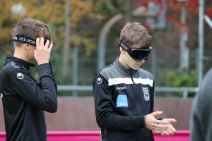 Dabei machten Jugendliche ganz neue Erfahrungen im Umgang mit Blindheit und erlernten spezifische Techniken, um diese in einem Blindenfußballspiel anzuwenden.