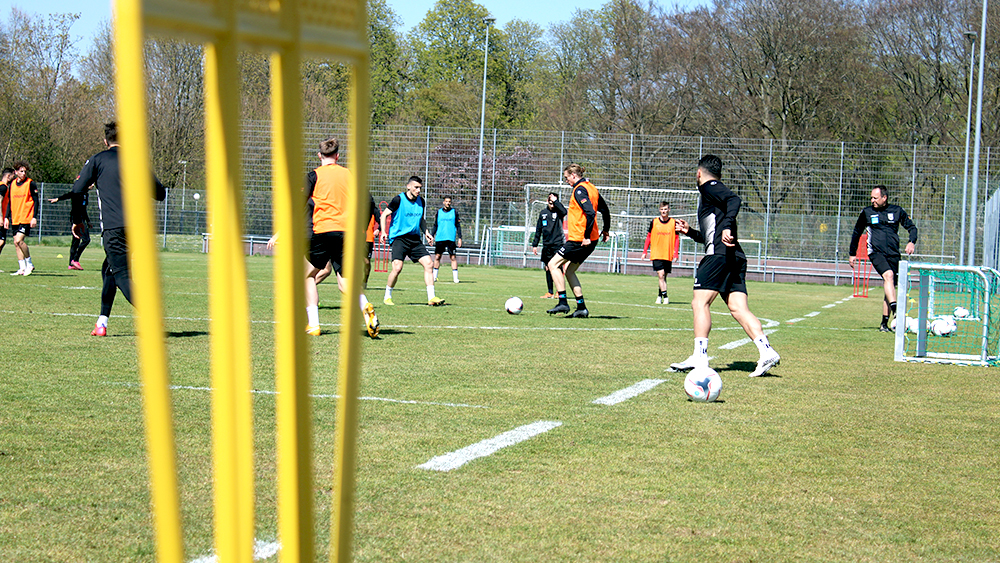 Nachdem unsere Mannschaft die letzten zwei Wochen in Quarantäne war, hat sie am heutigen Montag das Training wieder aufgenommen. Trainer Holger Bachthaler bat sein Team um 10.30 Uhr zu einem lockeren Aufgalopp. In den Tagen der Quarantäne konnten die Spieler lediglich zuhause trainieren und sich auf den Spinningfahrrädern des Vereins sowie mit Kraft- und Stabilisationsübungen fit halten.